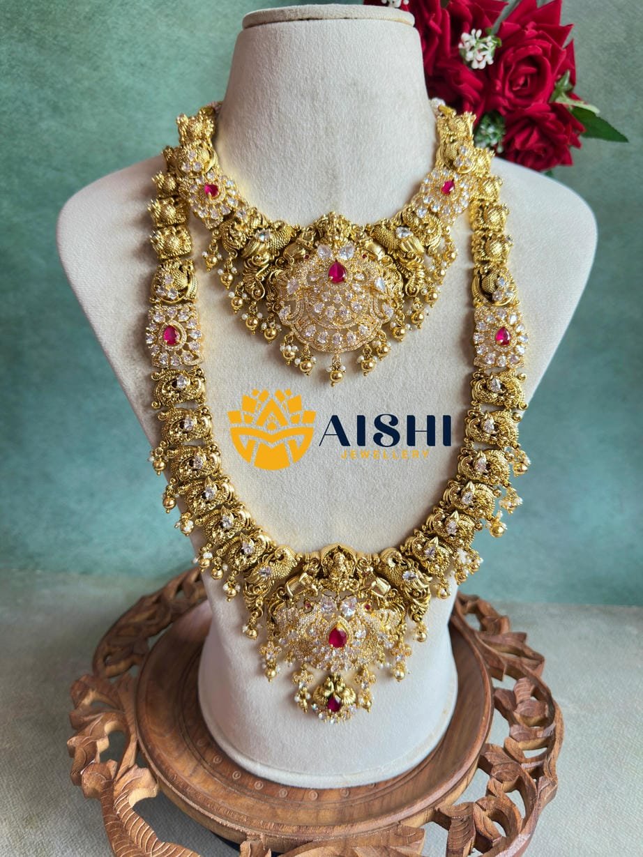 Sparkling Vanamayil Ruby Jewellery Set-BS123